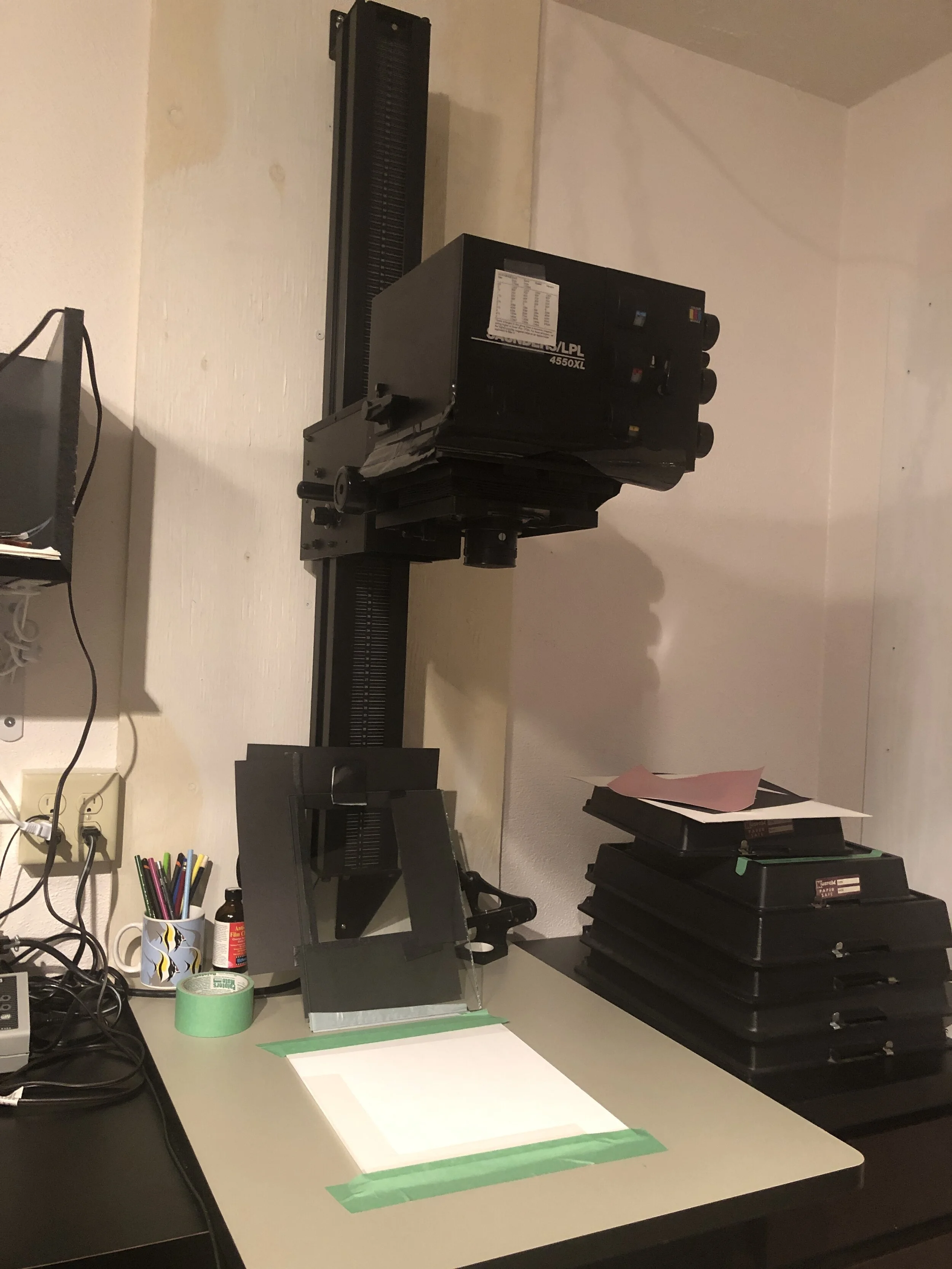 Wall mounted LPL 4x5 4550 XL enlarger.
